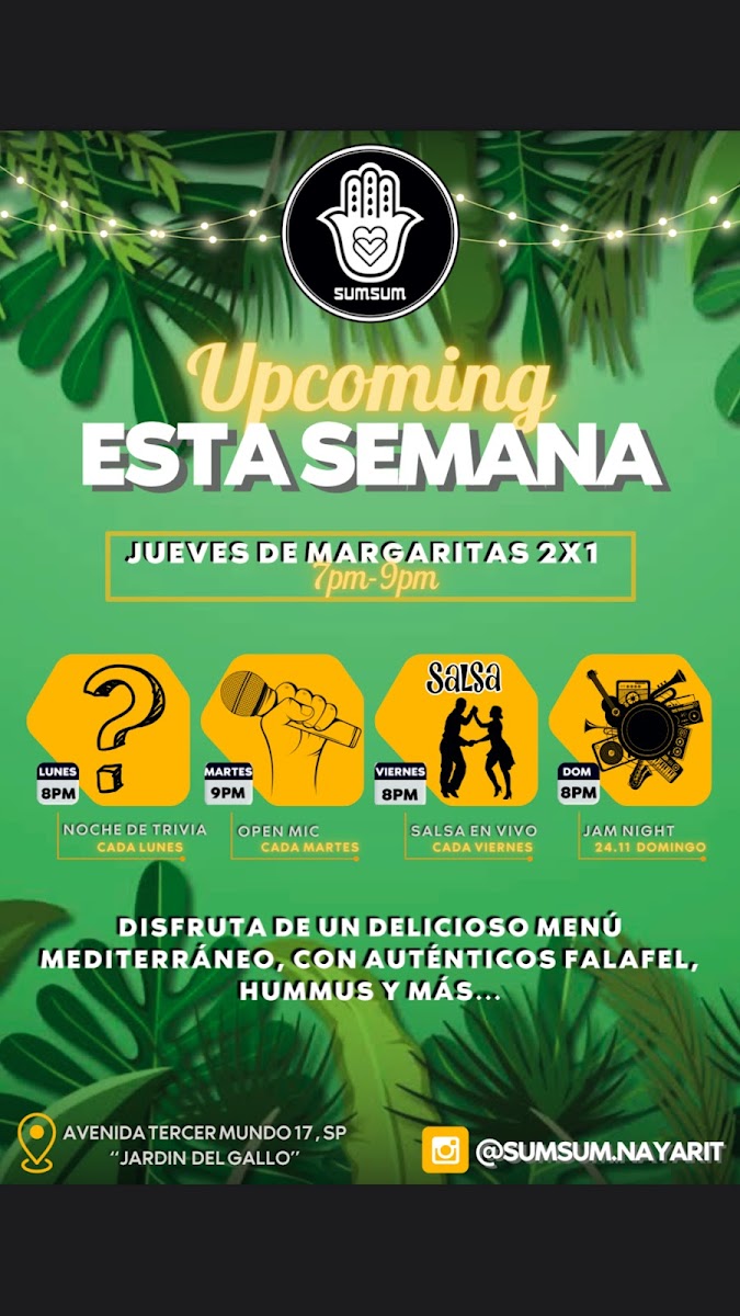 Welcome to Sumsum Falafel Sayulita, a gem nestled in Sayulita, Mexico, where Middle Eastern flavors take center stage. At this cozy eatery, the highlight is their Falafel Plate, featuring eight crispy falafel balls paired with handmade pita bread, creamy hummus, and a fresh cucumber-tomato salad. For those on the go, the Falafel Pita serves up five falafel balls, ensuring satisfaction with every bite. Customers rave about the generous portions, delightful spice levels, and friendly, engaging staff. Vegans rejoice as the menu is packed with delicious options, making it a haven for plant-based food lovers. With each dish crafted with care, the vibrant atmosphere fosters a warm dining experience. Whether dining in or taking away, Sumsum’s offerings attract both locals and travelers seeking authentic Middle Eastern cuisine. Prepare to indulge in a culinary journey that will leave you eager for a second visit!